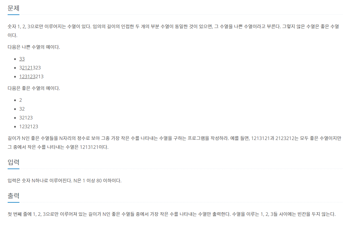 문제 링크 : https://www.acmicpc.net/problem/2661