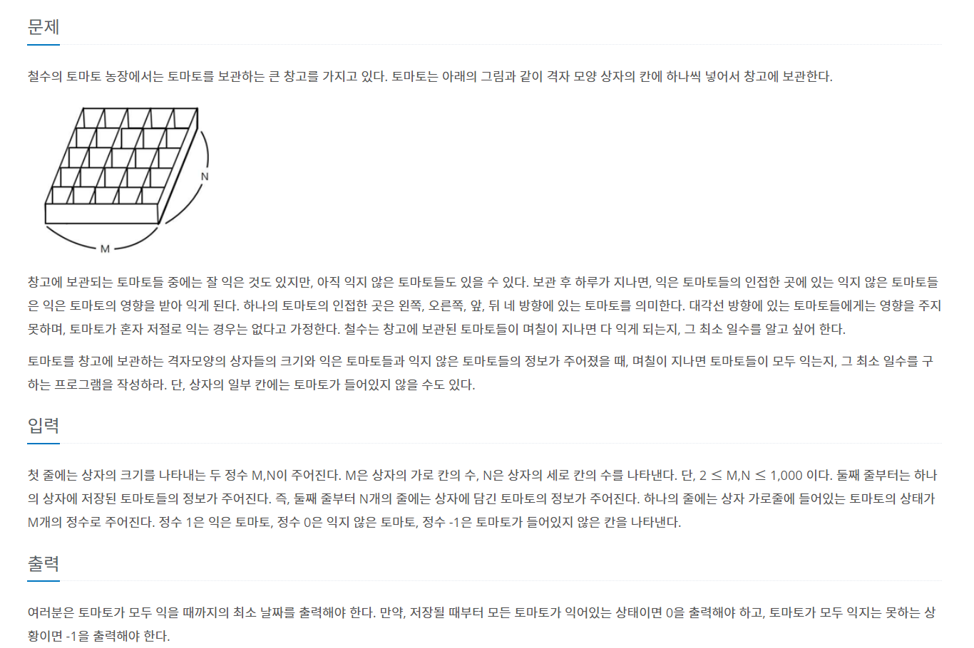 문제 링크 : https://www.acmicpc.net/problem/7576