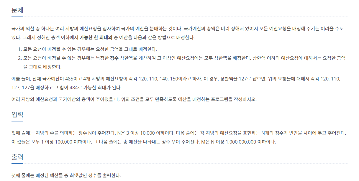 문제 링크 : 2512번: 예산 (acmicpc.net)