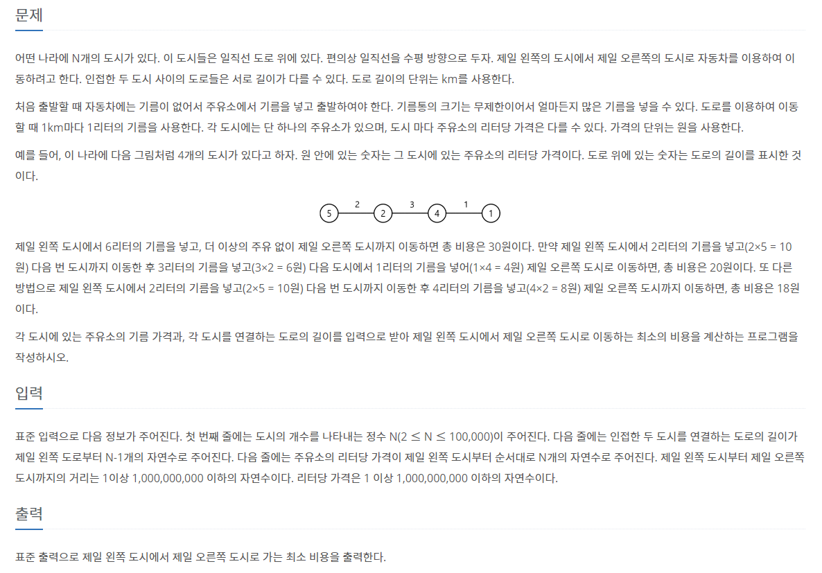 문제 링크 : 13305번: 주유소 (acmicpc.net)