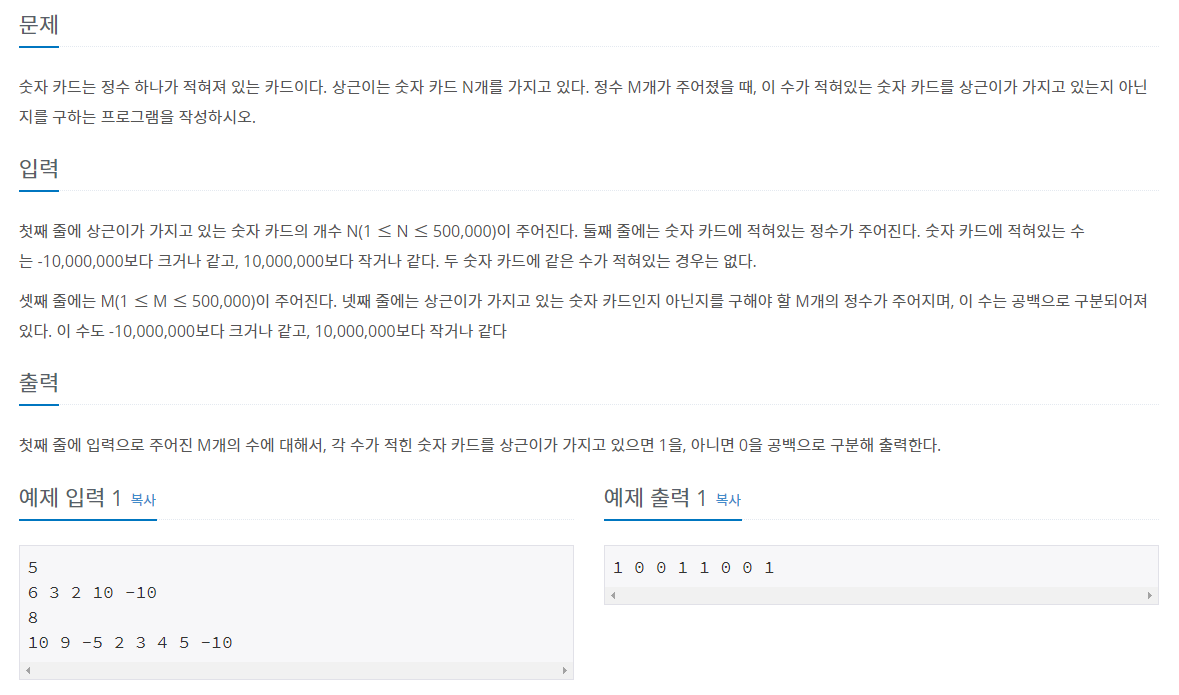 문제 링크 : https://www.acmicpc.net/problem/10816